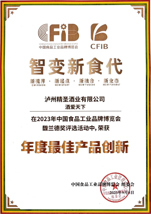 瀘州精圣酒業(yè)有限公司出品的“精圣”牌酒愛(ài)天下·禮品酒,具有諸香渾然添陳、內(nèi)斂渾厚飽滿(mǎn)、韻味甘綿雅凈,聞著香、喝著順、飲后心曠神怡的內(nèi)在品質(zhì),以及銀裝素雅剔透、生態(tài)玉白韻綠的外在裝潢,在此次展會(huì)中以其“蓋世酒仙、內(nèi)外兼修”的產(chǎn)品魅力優(yōu)勢(shì)脫穎而出,獲得馥蘭德獎(jiǎng)2023年度產(chǎn)品創(chuàng)新獎(jiǎng)。